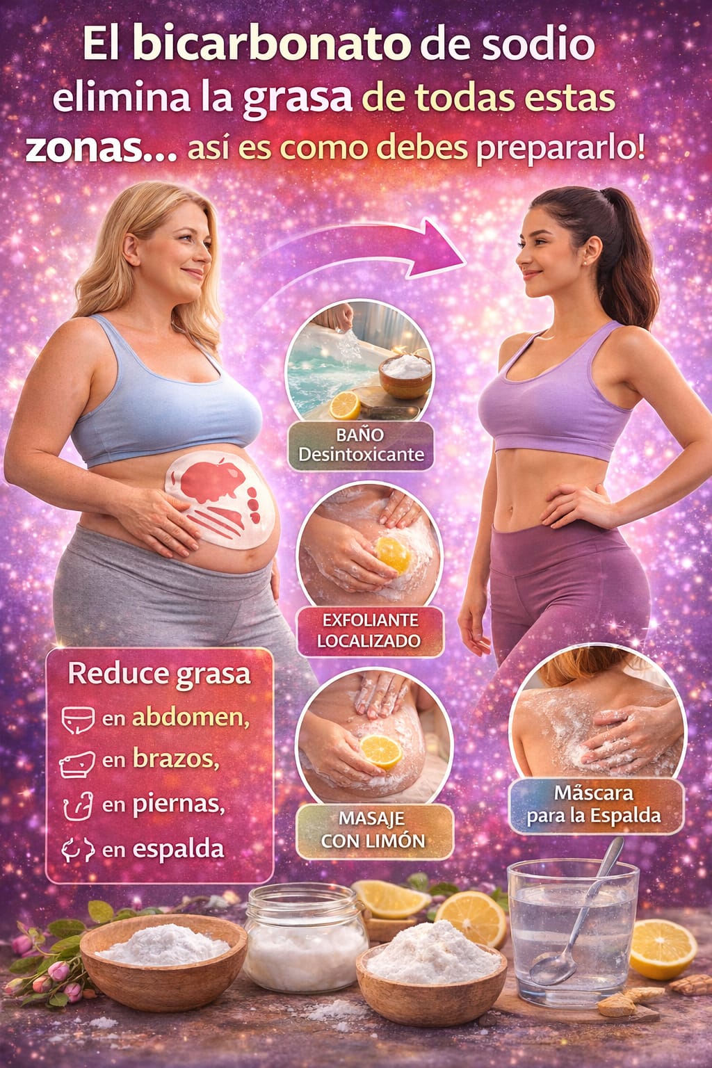El bicarbonato de sodio es una herramienta natural y económica que puede ayudar a reducir la grasa localizada en diversas zonas del cuerpo. Sin embargo, es importante recordar que no existen soluciones mágicas. Para obtener los mejores resultados, combina estos tratamientos con una alimentación saludable, ejercicio regular y una hidratación adecuada. Siempre consulta con un profesional de la salud antes de iniciar cualquier tratamiento nuevo, especialmente si tienes condiciones preexistentes.