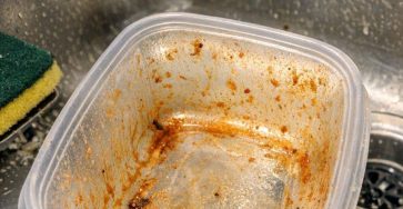 My mom taught me this trick to get red stains out of plastic containers with 0 effort. Here’s how it works